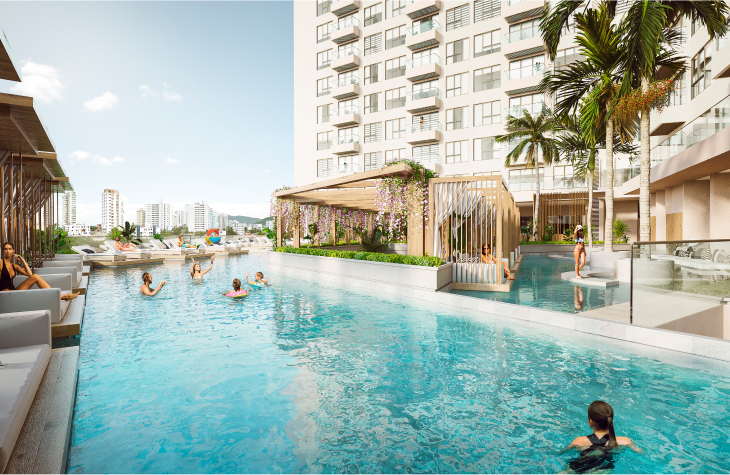 Exclusivos apartamentos de playa, para vivir un nuevo estilo de vida a pocos pasos del mar en una zona exclusiva de Santa Marta en Bello Horizonte. Un destino único para vivir momentos sorprendentes, ubicado estratégicamente cerca a zonas comerciales, restaurantes y a solo 10 minutos del aeropuerto. Relájate en las zonas comunes que te gustan.